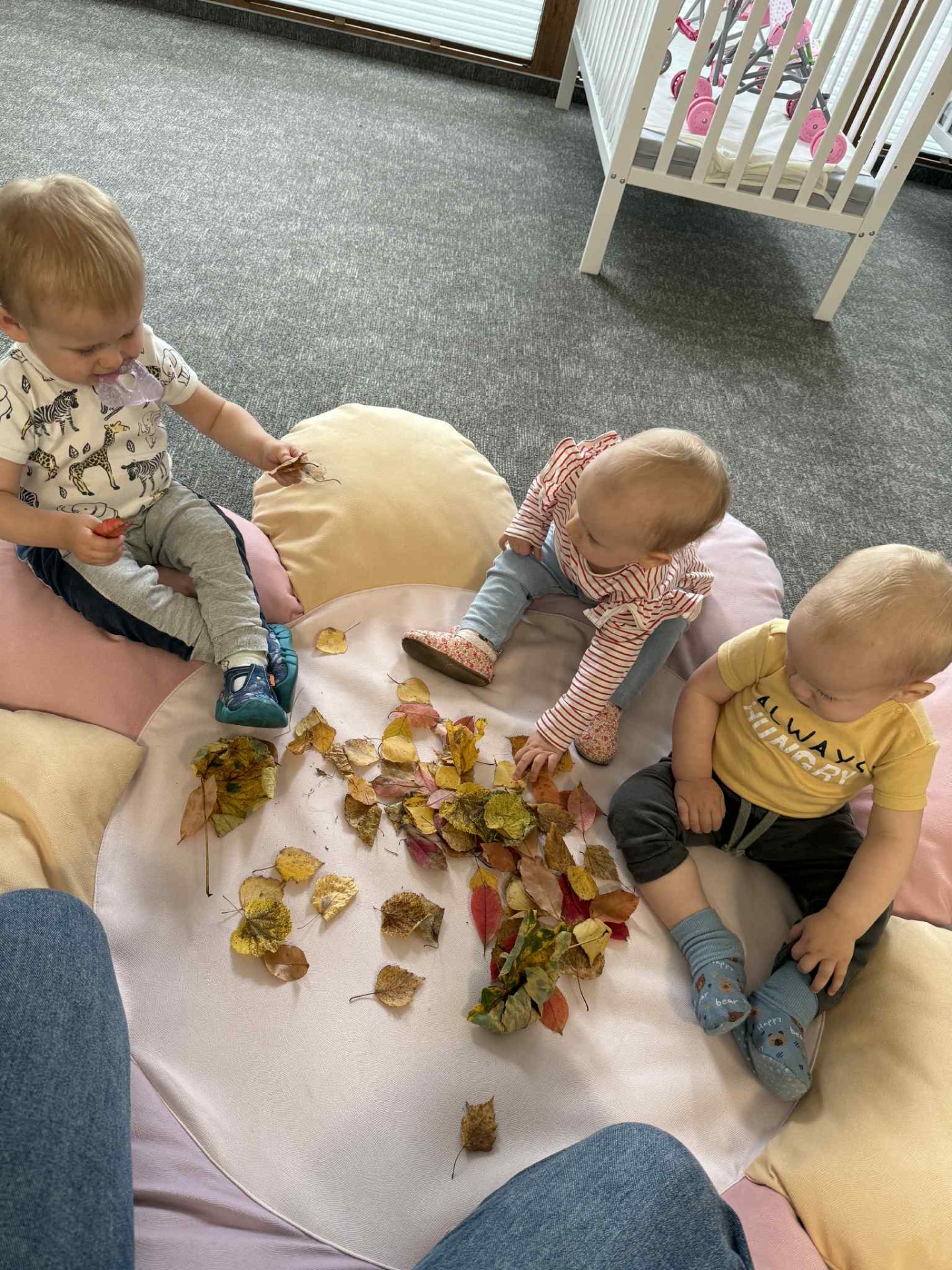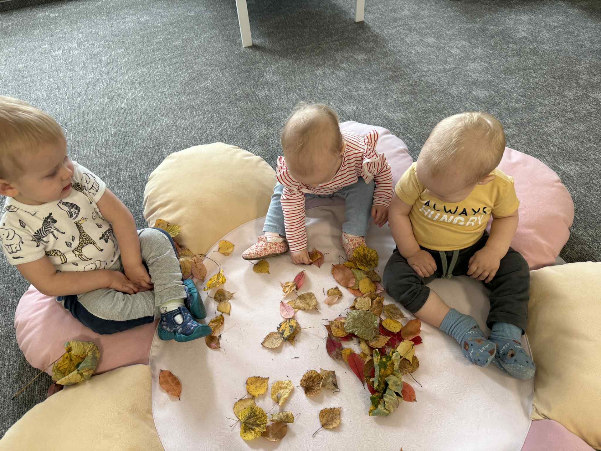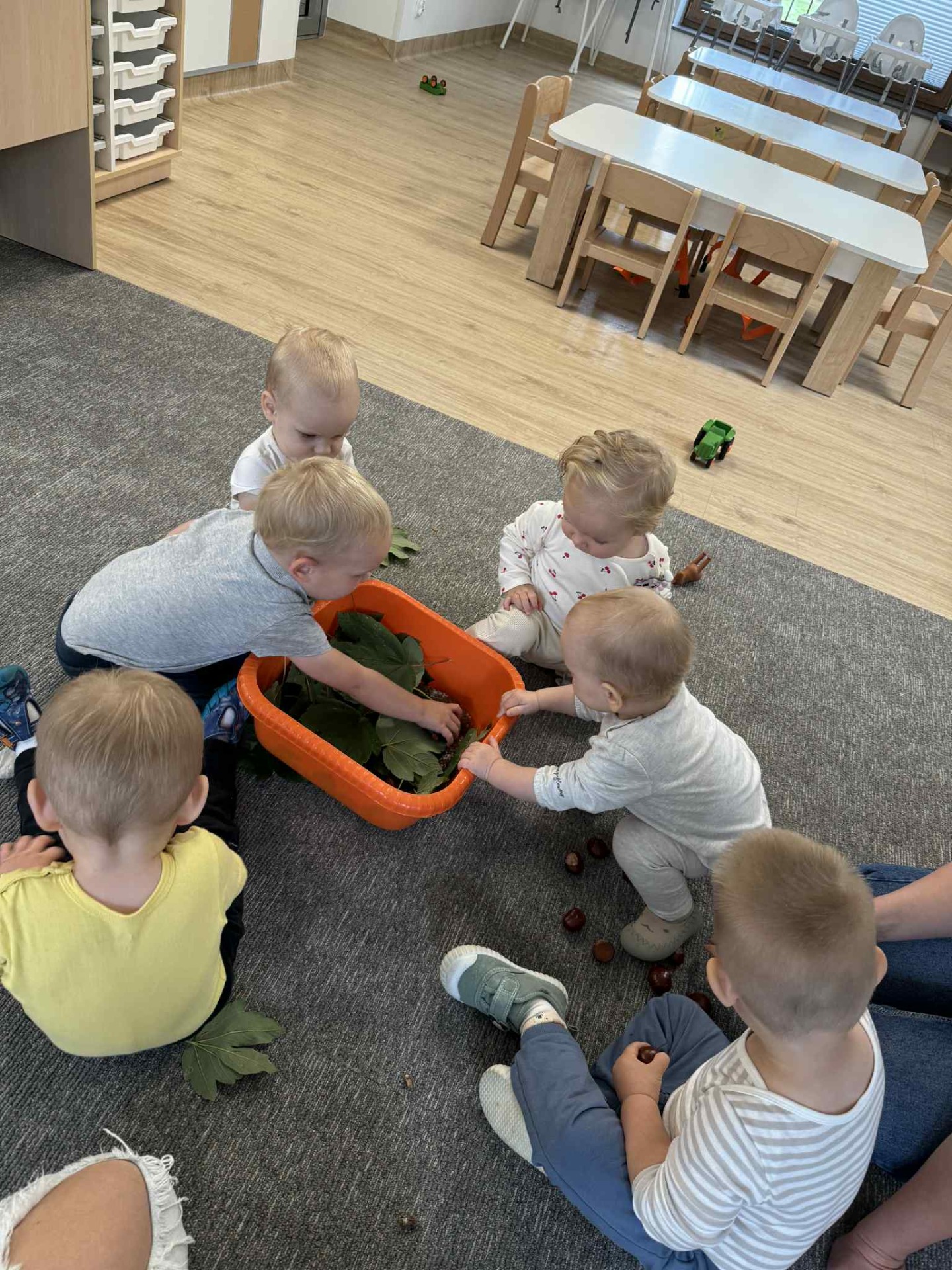 Dzieci poznawały jesień wszystkimi zmysłami – dotykały, oglądały i bawiły się naturalnymi skarbami tej pory roku. Wspólnie tworzyliśmy proste prace plastyczne z wykorzystaniem jesiennych materiałów, rozwijając przy tym małą motorykę i kreatywność.